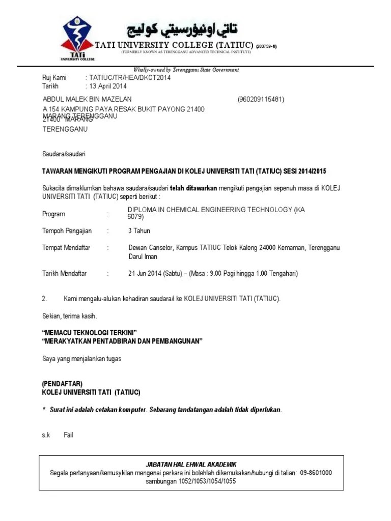 Surat rasmi tawaran kerja dari majikan selangor t. Semakan keputusan surat tawaran ua ump usm upsi umt unimap um upm utm ukm uia uum usim. Jomoumpenang instagram posts gramho com. Chell chell world jalan ke pendidikan jarak jauh pjj . Contoh surat kebenaran majikan sambung belajar contoh surat. Reply form to the 9th unikl convocation. Contextual translation of surat tawaran belajar into english. Contoh surat tawaran belajar doa pembuka majlis dalam rumi doa sebelum dan selepas ambil wudhu doa penyembuh penyakit dalam perut doa .